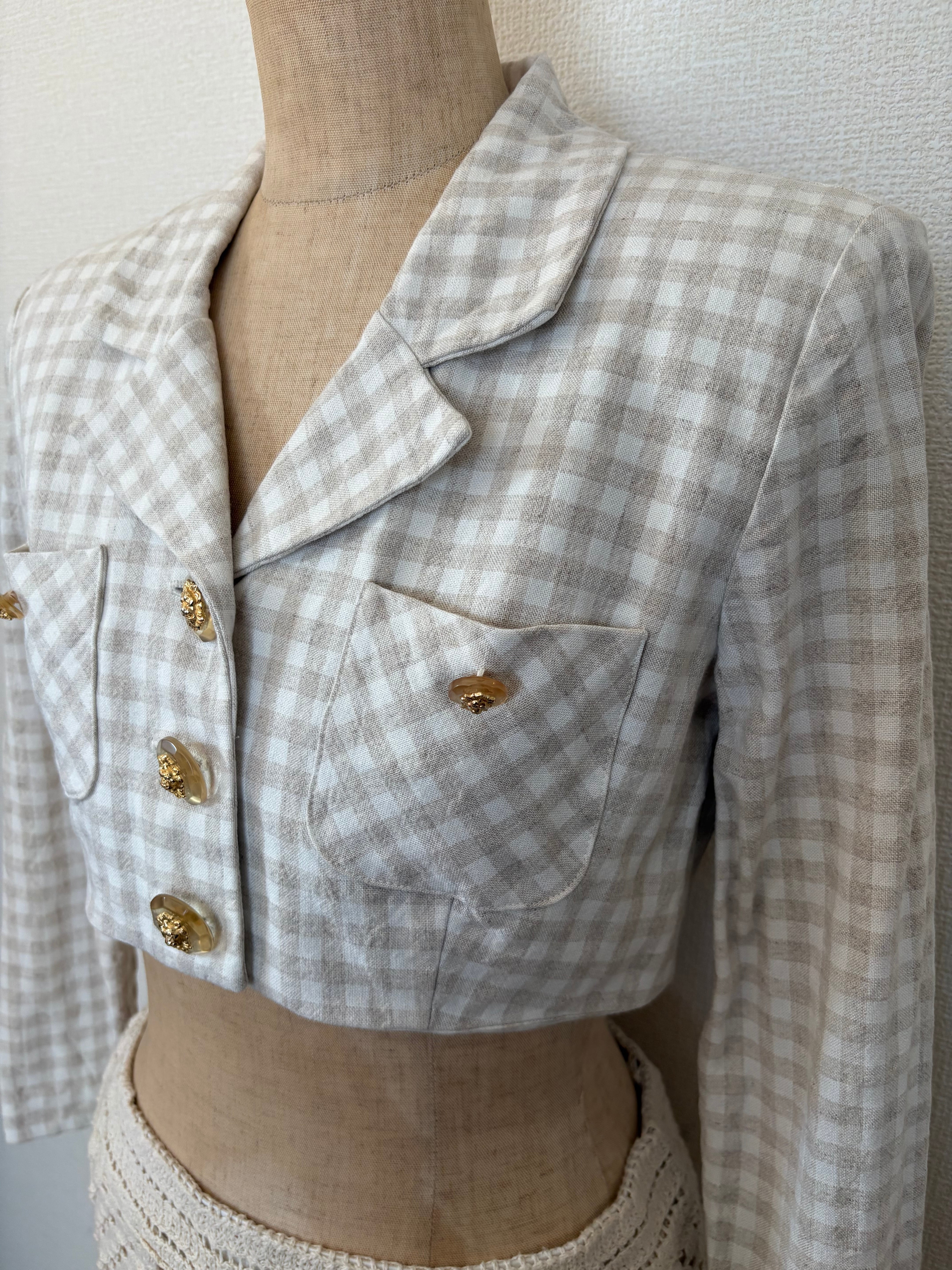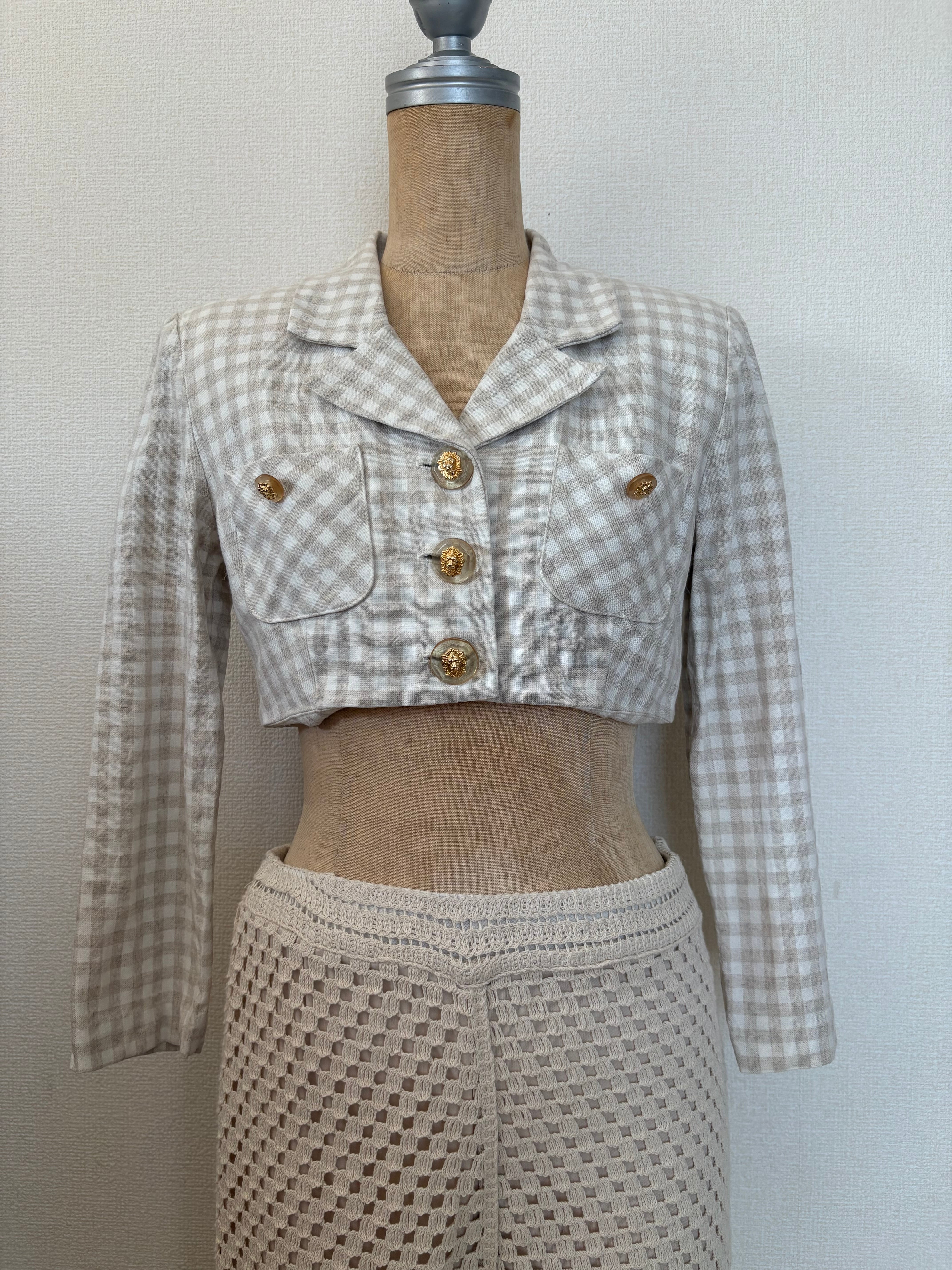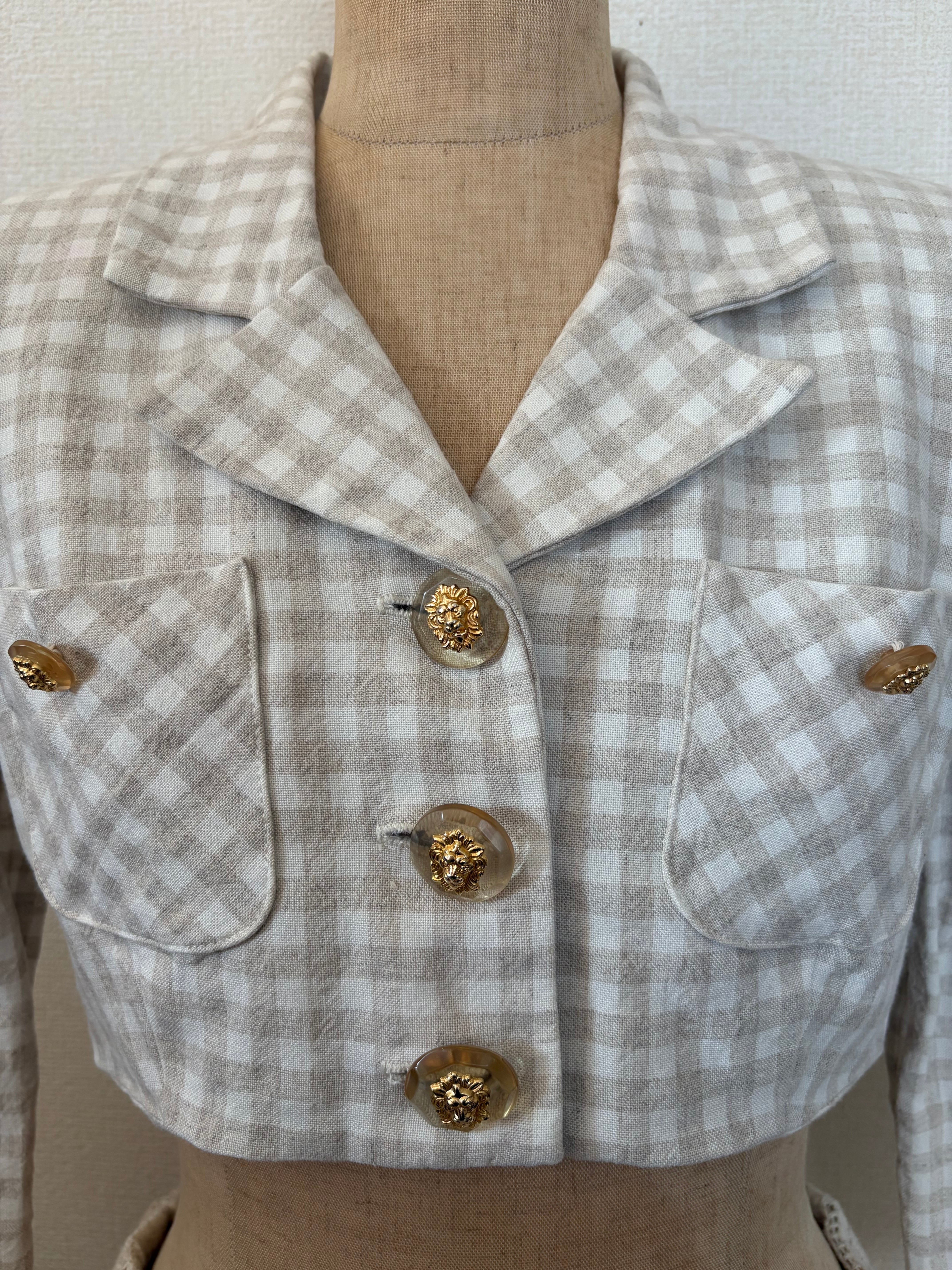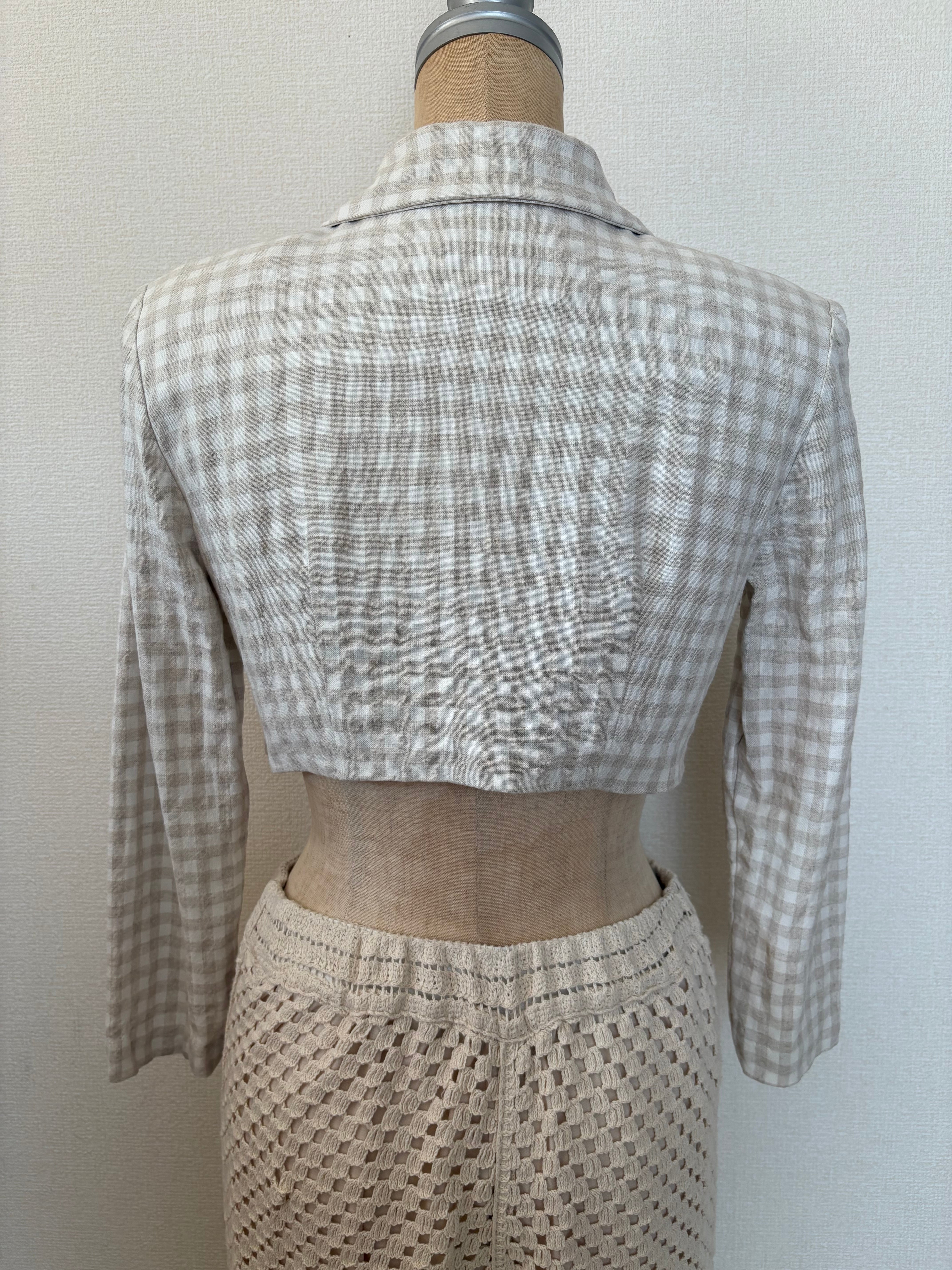 gingham linen short jacket